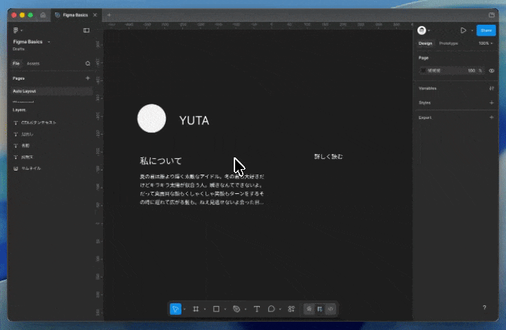 オートレイアウトが使えるようになるとレイアウトを感覚ではなくコーディングレベルに近いレイアウトを素早く組めることができ、デザイン後の作業に大きく影響します。